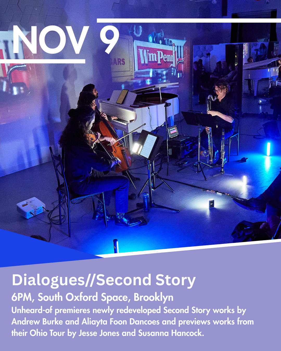 Unheard-of explore a brief history of trios for clarinet, violin, and cello from first major works like Messiaen’s “Intermède” from Quartet for the End of Time and Ingolf Dahl’s Concerto a Tre, to recently written works including Meg Okura’s Phantasmagoria and Du Yun’s dreams – bend. Unheard-of is joined by Sputter Box, performing a set of their own trios and recent premieres by Onche Rajesh Ugbabe, Jane Kozhevnikova, and Brendan Sweeney.